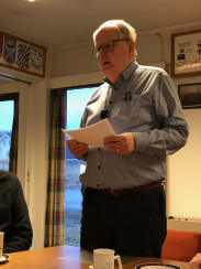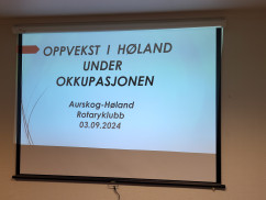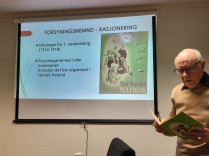 Bjørn Bergsjø stilte på kort varsel med et meget interessant foredrag om hvordan han som guttunge opplevde okkupasjonen i 1940-1945. Han fortalte om rasjonering, kaotiske tilstander under evakuering, ulike pålegg fra okkupasjonsmakten, mangel på /rasjonering av "normale" varer som kaffe og mel, kaffeerstatninger, egenproduksjon av potetmel, hvordan