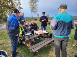 Etter jobben ble vi stående på vollen og snakke om utsikt, fortets betydning for kommunens innbyggere, og også litt om klubbens prosjekt. Og etterpå var det selvsagt kaffe med "någå attåt".