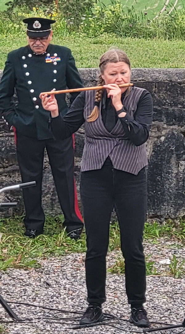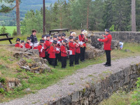 spilte både fløyte og saxofon. Og ikke minst gledet Løken Skolekorps forsamlingen med både Ja vi elsker, Norge i Rødt Hvitt og Blått, og ledet an innmarsjen i selve fortet.