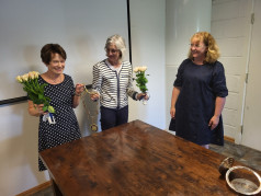 Hun takket for seg, og overrakte presidentkjede og blomster til innkommende president Ragnhild Hauglum og til Berit Olberg som har lovet å stille som backup for Ragnhild i påkommende tilfelle. Klubben har driftige og dyktige damer i sin midte!