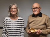 På bildet til høyre ser vi Mariann Ødegård (til høyre) som nettopp har mottatt klubbens (lokalproduserte) kaffekopp som takk for et meget interessant foredrag.