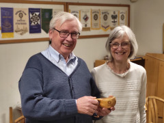 President Ragnhild takket Steinar for en svært hyggelig kveld og overrakte klubbens tradisjonelle tre-kopp som takk for kåseri, spill og sang!ÅRETS JULEMIDDAG