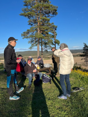 Og etter nærmere to timer vanker det selvsagt kaffe og løsprat oppe på vollen.