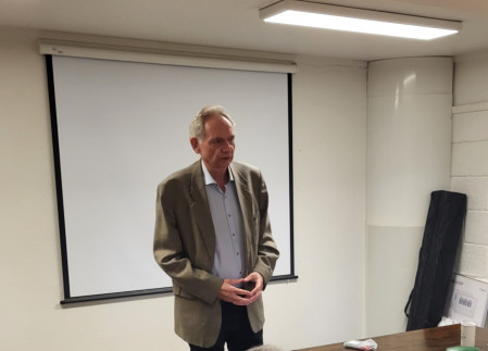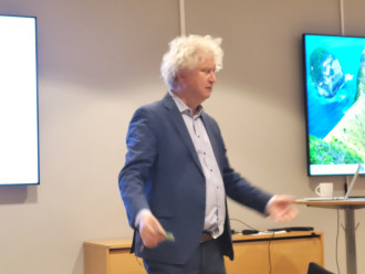 Tirsdag 3. desember hadde vi besøk fra daglig leder Ole Petter Bernhus ved Debio, Bjørkelangen. Bernhus ga oss en inspirert og inspirerende innføring i hva Debio er, organisasjon, formål, samarbeidspartnere, godkjenningsordninger, hvilke prinsipper de arbeider etter, etc. Meget sentralt står nødvendigvis økologisk landbruk, matproduksjon, bærekraft, alt sett i et klimaperspektiv. En bedrift som starter sin presentasjon med "....bedriften skal gjøre seg selv overflødig" må jo være et interessant tema!